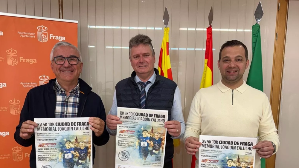 Una 5K 10K Ciudad de Fraga “Memorial Joaquín Calucho” de récord. Un total de 354 deportistas participarán en esta prueba que, organizada por el CA Fraga Bajo Cinca y el Ayuntamiento de Fraga, es ya todo un clásico del calendario deportivo local. El alcalde de Fraga, Ignacio Gramún, el concejal de Deporte, David Casanova, y el presidente del CA Fraga Bajo Cinca, Juan Carlos Longán, han presentado la prueba en rueda de prensa durante la mañana de este jueves.