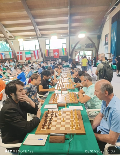 En el tablero 2 el español Renier Castellano ha entablado con el francés Pierre Laurent-Paoli en un difícil final de piezas mayores en una larga partida castigando el excesivo optimismo del francés al sacrificar la dama.