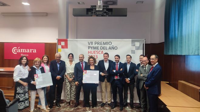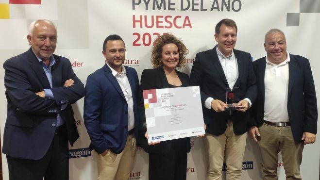 La capacidad de resistencia, expansiva e innovadora de Automóviles Cabrero SLU le ha hecho acreedor del Premio Pyme del Año 2023 de Huesca, un galardón que conceden el Banco Santander y la Cámara de Comercio de Huesca. Los hermanos Daniel y Susana Cabrero han recogido el premio en un acto en el que ha participado el presidente de la Cámara de Comercio de Huesca, Manuel Rodríguez, el director de zona Zaragoza-Huesca del Banco Santander, Daniel Chueca, el presidente de Ceoe-Cepyme Huesca, José Fernando Luna y el subdelegado del Gobierno, Carlos Campo.