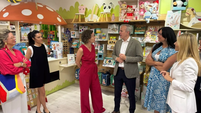 Tras la presentación, Jorge Azcón, Mar Vaquero y Lorena Orduna han visitado las tiendas Eureka Kids, de juguetes con un alto componente educativo, y la librería experiencial de Santos Ochoa.