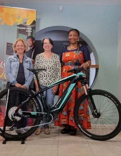Estefanía Eckes Palacín, ganadora en el sorteo del pasado 27 de agosto, por su compra realizada en Fashion Maseer Modista, no ha podido venir a recoger la bicicleta porque reside en Alemania, es por ello que su madre ha sido la encargada de recoger el premio.