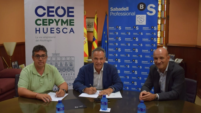 El Banco Sabadell y la Confederación Empresarial de la provincia de Huesca han firmado la renovación de un convenio de colaboración que ambas entidades suscribieron ya en 2015, y han realizado un balance muy positivo de las actuaciones realizadas en común y los servicios prestados.