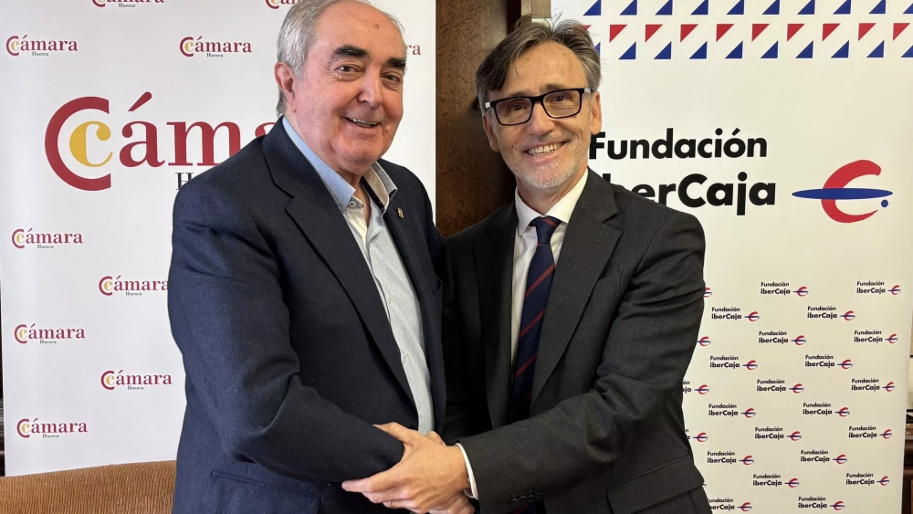 La Fundación Ibercaja y la Cámara de Comercio, Industria y Servicios de la provincia de Huesca van a continuar un año más sumando esfuerzos para organizar acciones de sensibilización dirigidas a las empresas altoaragonesas. Así lo estipula el convenio de colaboración anual que han firmado el director provincial de Ibercaja Banco, José María Coiduras, y el presidente de la Cámara, Manuel Rodríguez.