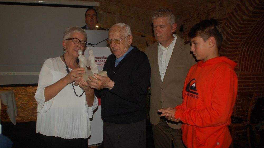 Esta noche del viernes, dentro de la programación de Estepárea, María Jesús Laguna estaba exultante porque entregaba el maravilloso trofeo de Pedro Ania a una persona a la que ha admirado desde niña. Hoy le quiere desde la plataforma del recuerdo. Y Ángel y Ángel, que vieron embelesados el video retrospectivo y actual de la ejecutoria de Casa Ramoner, agradecían el premio. Y Ángel padre exhibía una agilidad mental fantástica para rememorar su accidente de cervicales y reconocer que la fachada de su ser está bien apañada pero hay alguna gotera interna. Lo normal en un octogenario ya avanzado. Y los empresarios congregados escuchaban con atención sus explicaciones, la normalidad con la que afrontó el final de la etapa de guarnicionero como tal, y los muchos años de relación con los sariñenenses, como exponía su hijo en la alocución de gratitud. Y, una vez recogida la M de la pieza artística, la magia de la justicia se enseñoreó del refectorio del Restaurante Monegros.