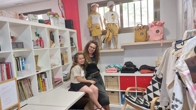 "Mamá empezó a hacer ropa cuando yo nací y, cuando nació Eloy, empezó a hacer más. La gente comenzó a preguntar dónde la hacía, cómo, dónde la compraba y se la quisieron comprar". Es Leyre, diez añitos de inquietud y curiosidad, y explica la raíz de Rebelde, la marca de ropa que regenta con su madre, Mapy López, en medio de un ecosistema armónico, el de la matriz Disímil que es un estudio creativo y el de la sala de eventos Eventual, en torno al Paseo de las Autonomías de Huesca.