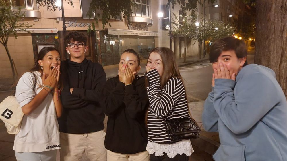 Una hora antes del cambio de hoja del calendario, los bancos de la Plaza de Navarra están ocupados por cuadrillas de jóvenes, mientras en el Café del Arte los veladores muestran a lo lejos a candidatos y militantes que se refrescan antes de la faena política que se les avecina. Un grupo de diez adolescentes ríen a carcajada limpia, en su diapasón hormonal específico. Pregunta señalando hacia el frontal del Casino: ¿sabéis que va a haber ahí dentro de una hora? Una respuesta a la gallega: ¿una manifestación? Acotamos más: ¿veis esos paneles? Otra contestación interrogativa: ¿un concierto? Derrochan simpatía, pero se quedan fríos en la explicación: la pegada de carteles. "Pues vale, pues bueno, pues me alegro", viene a significar el gesto de todos. Posan para la foto y agradecen, con muy buena educación, la información. Aunque no cambiarán sus planes.