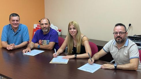 El acuerdo alcanzado ha sido suscrito por Chemis Ferrer, por CHA; Iván Holgado, por Cambiar Binéfar; y Tania Solans, por el PSOE, con la presencia del secretario general del PSOE en el Alto Aragón, Fernando Sabés.