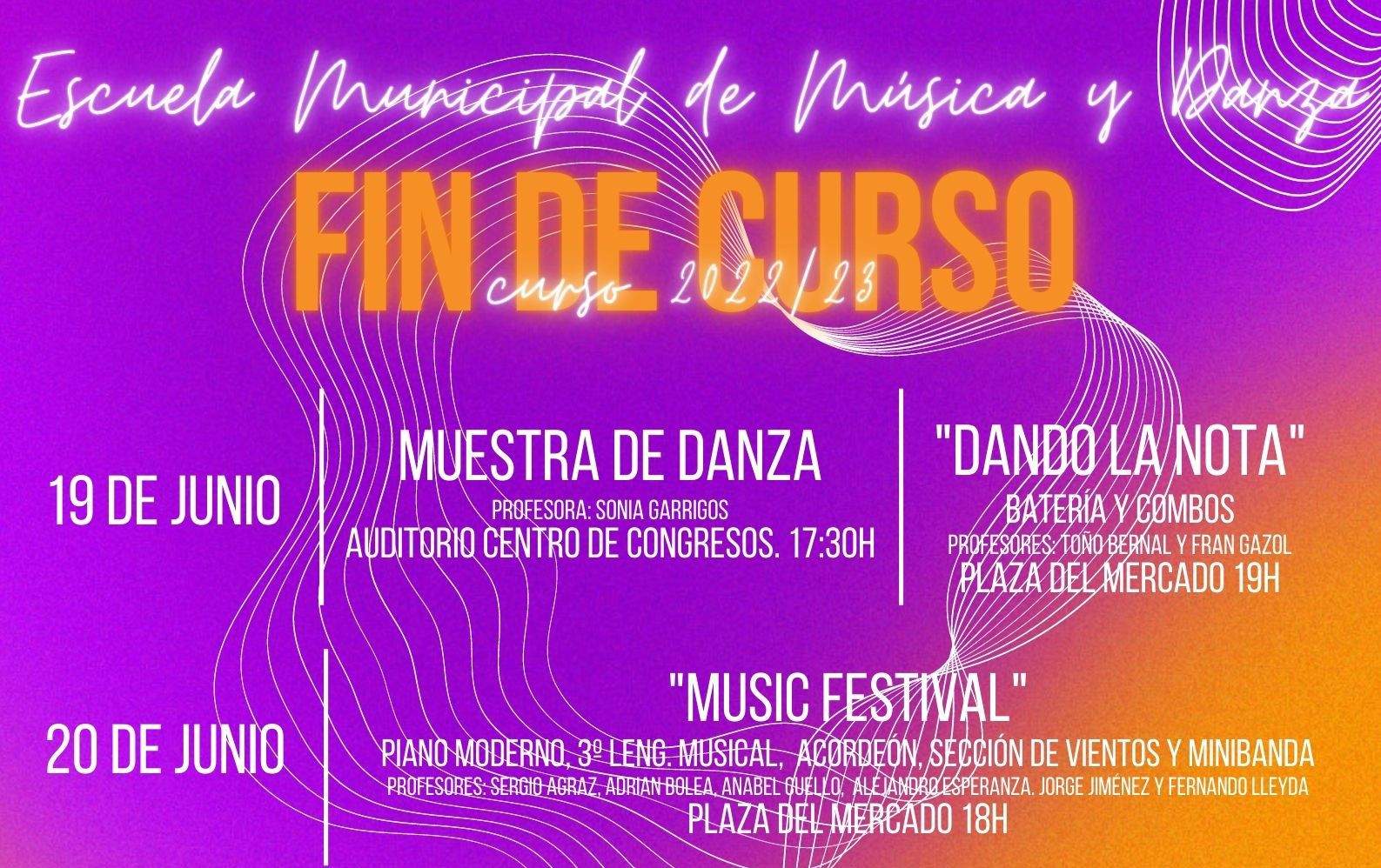Los alumnos de la Escuela Municipal de Música y Danza volverán a tomar las calles este martes, con el ‘Music Festival’ que se celebrará en la Plaza del Mercado. A partir de las 18:00 horas, por el escenario pasarán los alumnos de piano moderno del profesor Alejandro Esperanza y los de 3º de Lenguaje Musical de la profesora Anabel Cuello. A ellos se unirán también los alumnos de la sección de vientos: los de acordeón del profesor Adrián Bolea, las flautas del profesor Jorge Jiménez, los clarinetes y saxofones del profesor Fernando Lleida y las trompetas del profesor Sergio Agraz. El colofón a este festival lo pondrá la actuación de la minibanda dirigida por Sergio Agraz.