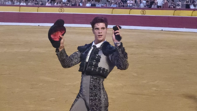 Había máxima expectación por ver a Diego Tebas en su debut de luces y los tendidos así lo han reflejado. Aunque ha logrado templar a un novillo complicado, ha fallado con la espada. Antes lo ha recibido con el capote con gusto. Quite de David Sejas y réplica de Tebas en un bonito encuentro.