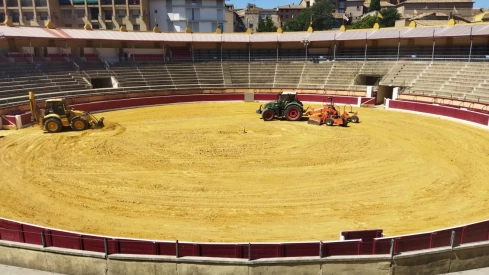 El nuevo albero sustituye al anterior en un drenaje integral por primera vez desde los años ochenta, cuando operaba como empresario del coso taurino oscense Justo Ojeda.