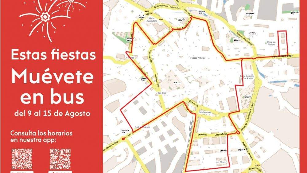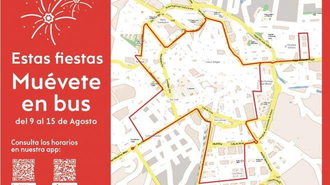 La finalidad de este servicio nocturno es “disfrutar de las Fiestas de San Lorenzo dejando el vehículo particular en casa, evitando así los problemas de aparcamiento, cortes de calles y otros derivados del normal desarrollo de las fiestas”, apunta el Ayuntamiento.