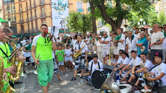 Hay un sonido que anuncia fiesta incluso antes de verla: el de las charangas. Con sus instrumentos de viento y percusión, sus ritmos contagiosos y su energía inagotable, son el alma de San Lorenzo. Y este martes, en la plaza de Navarra, han vuelto a demostrarlo.