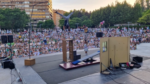 Ante unas gradas bien pobladas de un público familiiar, la compañía leonesa ha puesto en escena "El apartamento", Premio al Mejor Espectáculo de Calle en la Feria de Teatro de Castilla y León de Ciudad Rodrigo 2016, Premio del Público al Mejor Espectáculo en el Festival Internacional Malabharía Lanzarote 2017 y Premoi al Mejor Espectáculo de Calle en FETEN Gijón 2017.