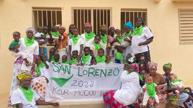 Agradecidas como están las destinatarias de esas ayudas, aparecen en estas fotografías en magníficas tonalidades sobre las que emergen el blanco y verde, junto a una pancarta dibujada con la leyenda: San Lorenzo 2022. Keur Modou Khary. Pues que también las disfruten a la distancia ellas.