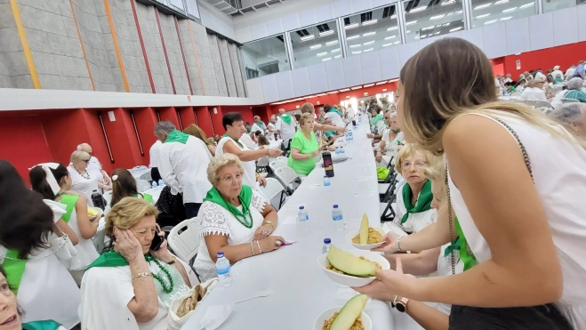 El menú, simple pero cargado de tradición, ha consistido en migas, acompañadas de melón, agua y vino. Todo preparado con especial cuidado, asegurando que los celiacos también pudieran disfrutar de las migas, adaptadas para ellos. Se han repartido en total 1.200 raciones de este plato tan arraigado en la cocina aragonesa, junto con 60 kilos de melón, que han refrescado la mañana con su dulzura.