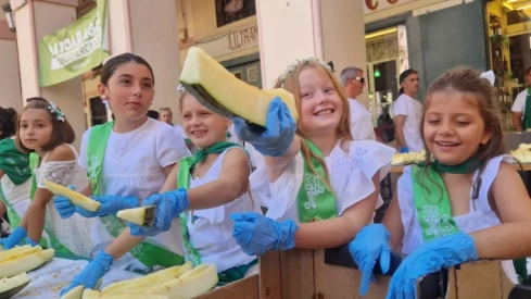 La Fiesta del Mercado de la Asociación de Comercio de Huesca ha contado con un multitudinario reparto de bocadillos de jamón y melón, un perfecto final para esta celebración que ha contado con todos los ingredientes para atraer a multitud de púbico en domingo luminoso, aunque muy caluroso, con el homenaje a Macu Lanuza y Toño Fernández, del Encanto del Barrio, y una nueva actuación de los Danzantes de Huesca y la Banda de Música.
