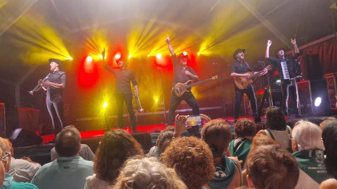 Al término del concierto, Iosu Burguete comentó a este periódico que había sido “una gozada" actuar en Huesca. "Llevamos varias actuaciones en la provincia y se nos está recibiendo con mucho cariño: Jaca, Sabiñánigo, Pirineos Sur, Binéfar… Es una reunión de gente que viene a pasarlo bien, a gozarla y a disfrutar de la fiesta en un ambiente muy sano y muy majo”.