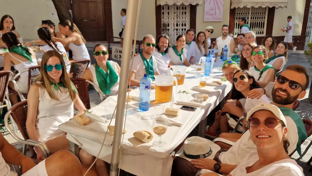 El centro está imponente, desde la Milla de Oro hasta el Coso Alto, donde una larga sucesión de mesas recuerda que es San Lorenzo. También el Parque y los espacios donde confluyen las peñas. Álvaro ya ha comenzado su maratón para recibir 1.200 almorzadores, y llegará al cohete que lanzará su madre, Alegría Blan. Todo sea por recibir a San Lorenzo en plenitud.