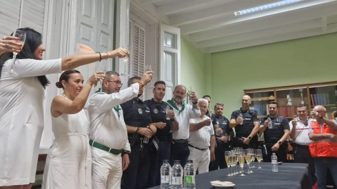 La alcaldesa de Huesca, Lorena Orduna, ha protagonizado un brindis con representantes de distintos cuerpos de seguridad y departamentos de trabajadores municipales e institucionales, además de los concejales de los distintos grupos, para agradecer "el grandísimo trabajo que habéis realizado estos días".