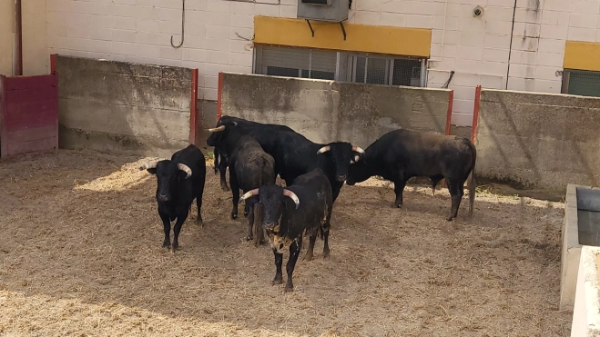 Los novillos de Cayetano Muñoz han llegado este miércoles a la plaza de toros de Huesca, donde serán lidiados este viernes 8 de agosto (20:00h) por David Sejas, Ángel Alarcón, Asier Abadiano y Diego Tebas, éste último en su debut de luces.