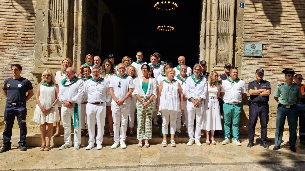 Una nueva denuncia por agresión sexual ha vuelto a empañar las fiestas de San Lorenzo. El Ayuntamiento de Huesca ha convocado a la ciudadanía a las puertas de la casa consistorial, donde se ha guardado un minuto de silencio, a las 12:30.
