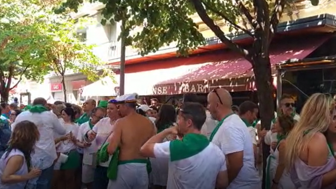 El Oscense ha vuelto a ser un bar de peregrinación laurentina en estas primeras horas de San Lorenzo. Después de un mes cerrado y con el arranque de las festias, ha reabierto una hora antes del lanzamiento del cohete y desde entonces ha estado lleno de clientes, tanto dentro como fuera.