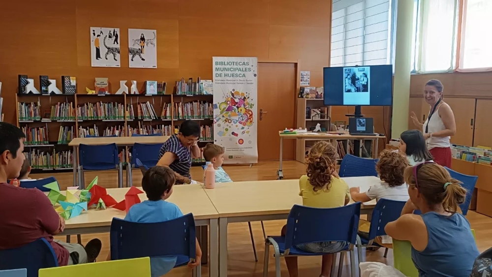 Durante todo el mes de julio y hasta el 8 de agosto, se ha querido relanzar de nuevo el reto a la ciudadanía, facilitando material en las propias bibliotecas para la realización de las pajaritas y también recogiendo las realizadas por usuarios y usuarias en sus casas. Se han organizado talleres de papiroflexia y se ha difundido la figura de Ramón Acín entre los más pequeños.
