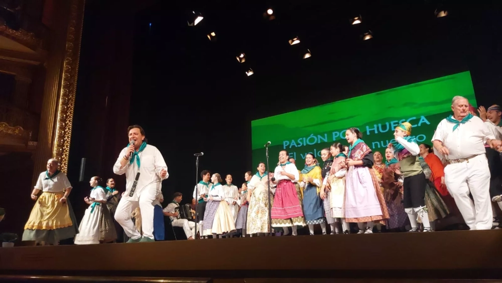 Era el momento sorpresa. En el escenario, irrumpió Paz Raya con su portentosa voz para cantar las emociones de los hijos pródigos que habitan en la diáspora. "Cuando un oscense se marcha, dejando su tierra hermosa... a Huesca jamás olvida y se la lleva en el alma". Pelos como escarpias.