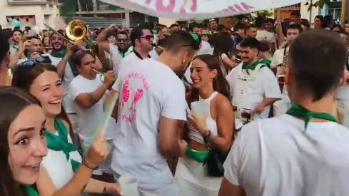 En pleno Día Grande de las fiestas de Huesca, celebradas en honor a San Lorenzo, numerosos oscenses se vieron sorprendidos por un momento muy especial. Durante el pasacalles laurentino de la Peña L'Albahaca Reberde, uno de los integrantes de la Charanga El Pincho le pidió la mano a su novia ante la alegría y jolgorio de la multitud.