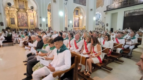 Resulta prescindible definir el grado de lleno de la Basílica, entre llena y abarrotada, y es que en torno a la solemnidad de celebración tan nuestra se congregan cientos y cientos de oscenses plenos de fe y de orgullo de identidad. Satisfacción en los integrantes de la Real Cofradía de San Lorenzo. En la celebración, las corporaciones municipales oscense y tarbesina, con los alcaldes, Lorena Orduna y Gerard Trémège, a la cabeza.
