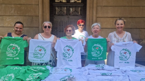 Maite Aznárez, presidenta de Entarachén, ha acudido dsde el punto de la mañana a instalar su stand en los Porches de Galicia. “Estamos como todos los años, poniendo una nota de solidaridad en las fiestas laurentinas”, ha comentado, mientras colocaba varias camisetas a la vista del público.