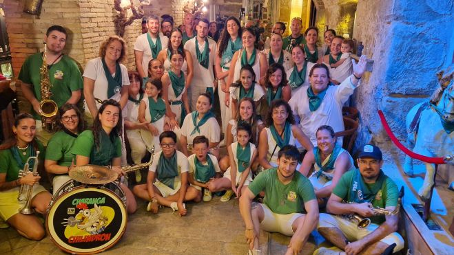 La inclemencia meteorológica les ha obligado a cambiar el escenario, y Julve ha dado las gracias a La Confianza por cederles su bodega, donde se han podido tomar finalmente las imágenes, al ritmo de la Charanga Chilindrón de la Zoiti.