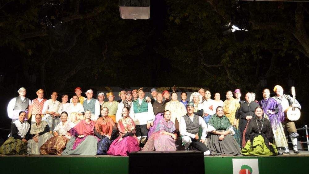 Estirpe de Aragonia juega en casa. Cantar, bailar y tañer en el Paseo Carlos Vidal del Parque Miguel Servet otorga una ventaja a su virtuosismo. Pero también es una responsabilidad. Les examinan desde abajo los cientos de personas que pueblan las sillas. Les escruta desde arriba el del salto imposible, el que retó a las leyes de la gravedad. Tamaño compromiso ha sido resuelto con nota en la velada sabatina, en la que el relato, y con él la vida, se han convertido en jota porque han sido capaces de entonar ese oxímoron que es la "cotidianeidad extraordinaria" que nos ha dejado la pandemia. De ahí la satisfacción suprema de la asociación que preside Noemí Lanaspa, capaz de "desnudarse" en el escenario narrando sus cuitas, las de ciudadanos normales que van de fiesta, de celebraciones, que viajan y que trabajan. "Volvamos a latir" es el epígrafe del espectáculo de este San Lorenzo. Y, con él, la puesta en escena abre con un corazón verde que bombea al ritmo laurentino. El arranque para que luego condujera el acto la periodista de Diario del Altoaragón Susana Deito.