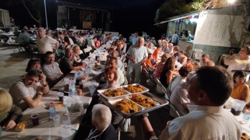 Sucede con todo el pueblo. El agua fertiliza la vida y también las fiestas. Por eso se produce la multiplicación del censo, de 46 habitantes según reza el de 2022, y se juntan a cenar este viernes 21 de julio más de 160 personas al reclamo de las Fiestas de Santiago 2023 y de su Semana Cultural. Y, porque la gastronomía es cultura, después del volteo de las campanas a las 19:00 horas de este viernes se han concentrado en una cena consistente en una rica Paella de Garcés. Aseguran las fuentes bien informadas, Fernando Paúles cámara en ristre, que no ha quedado constatado que sólo se bebiera agua en Aguas. Que es probable, incluso, que algo espirituoso corriera al ritmo de la música de la Discomóvil de Sonido 54 de Roberto Latre a partir de la 1 de la madrugada.