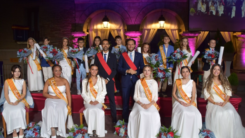 Las zagalas son Izarbe Moya Puntos, de la Aasociación de Vecinos Miguel Servet; María Rosa Tunkara Espín, de la A.V. San Juan-Joaquín Costa-El Molino; Cristina Sesé Garcés, de la A.V. Santo Domingo; Inés Vidaller Carbonell, de la A.V. Conchel; María Vidal Abadía, de la A.V. Centro-Jacilla; y Lucía Ezquerra Rivera, de la A.V. La Carrasca.