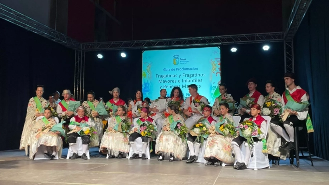 El acto se ha celebrado en el Castillo de Fraga, donde el protagonismo ha sido para Marc García, Valeria Arán, Vega Florensa, Marc Utrilla, Zoe García, Óscar Gros, Guillerm Tabernilla, Irene Canales, como fragatinas y fragatinos infantiles, y Raúl Ramos, Lucía Pardo, Pablo Cortí, Miriam Mesalles, Noemí Moné, Nacho Lahuerta, María Gálvez y Marc Teruel, que forman el grupo que en estas fiestas del Pilar representan juventud fragatina.