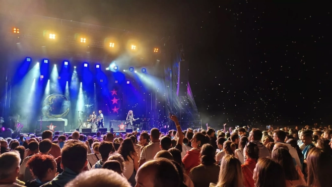 En su repertorio en Sariñena, hubo canciones míticas desde su primer disco, Mira, y el segundo, A golpes de Rock and Roll, hasta Justo después del silencio de este mismo año o Cada vez duele menos, de hace dos, dieciséis trabajos en total. El público sariñenense se dejó mecer y también bailó a todo ritmo, el que marcó La Fuga en una noche para la historia festiva de la villa.