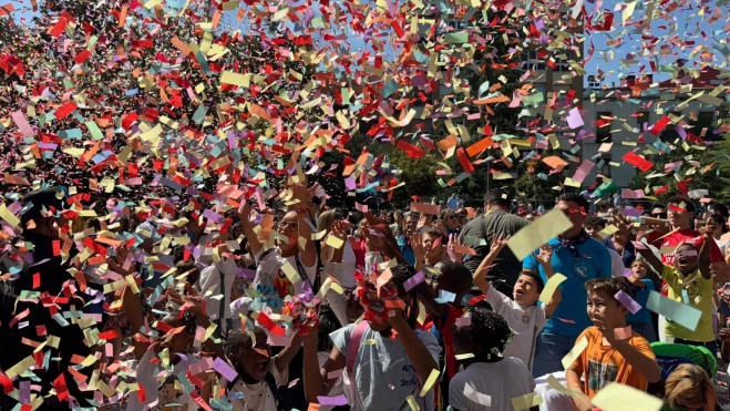 Los Gigantes y Cabezudos han recogido a los niños de los colegios y los han introducido, entre confetis, música y muchísima alegría en las fiestas del Santo Cristo de los Milagros de Binéfar, una manera jubilosa de comenzar que ya no se va a detener hasta el día 15 de septiembre, cinco días con una programación muy rica con muchas novedades.