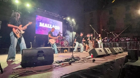 En la madrugada del jueves al viernes, la Plaza Mayor vibró con el concierto de los locales Mallazo, que con Otra noche más hicieron bailar y saltar sin descanso a miles de asistentes, protagonizando una de las grandes noches de San Mateo.