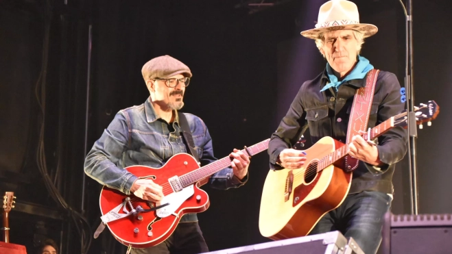 Mikel Erentxun ha arrancado su actuación con un brindis con una copa vino de la tierra para inmediatamente coger su guitarra y sumar un concierto más en su primera presencia en Monzón.