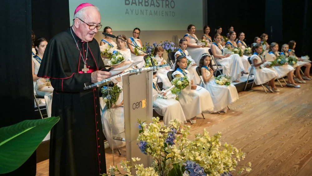 Razonada la conveniencia de aceptar la invitación del Ayuntamiento y tras saludar "a todo cristo", ha manifestado que, como trasluce del cartel de Cristóbal Aguiló, hablar de las fiestas de Barbastro "es evocar con emoción a gigantes y cabezudos; al chupinazo, al pasacalles, a las carrozas y charangas; a las ferietas, atracciones, tómbolas, caballitos y autos de choque; a las damas, reflejo de nuestra juventud; al pregonero del Vero (con el burro y su ayudante); al Coso Blanco del día 4, con sus confetis y guirnaldas; a los conciertos; a la Sociedad Mercantil y Artesana; al Grupo Tradiciones; a Protección Civil, la Cruz Roja, los Amigos de la Plaza de Toros; a la ofrenda y la eucaristía en honor de la Virgen del Pueyo, nuestra Madre. Y cómo no, a los fuegos artificiales, que iluminan nuestras vidas y recargan de esperanza, alegría y fraternidad nuestros corazones hasta el año siguiente".