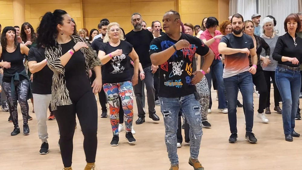 Se aprecia un entusiasmo contagioso entre los "bailones" y las "bailonas" que disfrutan en el salón del Hotel Abba Huesca, donde los pies se mueven al ritmo habanero más genuino, y los brazos, y todo el cuerpo hecho armonía. Michael dirige la acción por momentos y luego le sucede Neily.