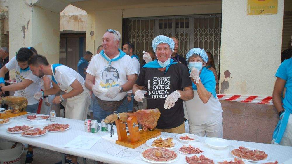 El Concurso de Cortadores de jamón de las fiestas de San Antolín de Sariñena ha vuelto a celebrarse con el mismo éxito que en su primera edición en 2019. Se esperaba con muchas ganas y la calle Mercado ha quedado abarrotada pasadas las 19:00.