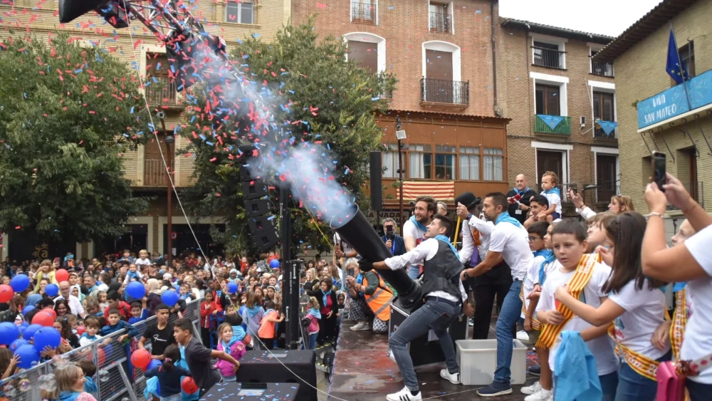 DISPARO DEL CODETAZO Y PREGÓN DE PEÑAS a cargo de la peña La Trifulca en la plaza Mayor, dando comienzo a las fiestas de San Mateo de 2025.