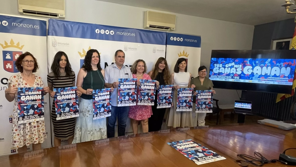 La consejera de Igualdad, Marta Montaner Durán, la concejala de Igualdad del Ayuntamiento de Monzón, Katia Hernández, la presidenta del Colectivo Feminista del Cinca Medio, María Pilar Pallás, y las diseñadoras de la campaña, África Sanjuán y Nerea Mur, han participado en la presentación de “Tus ganas con mis ganas ganan”, que da continuidad a las anteriores “No es No” y “Solo Sí es Sí”, con un cambio en el concepto, pero con el mensaje de “ante el acoso y cualquier forma de violencia sexual, rechaza, implícate, actúa, 016”.