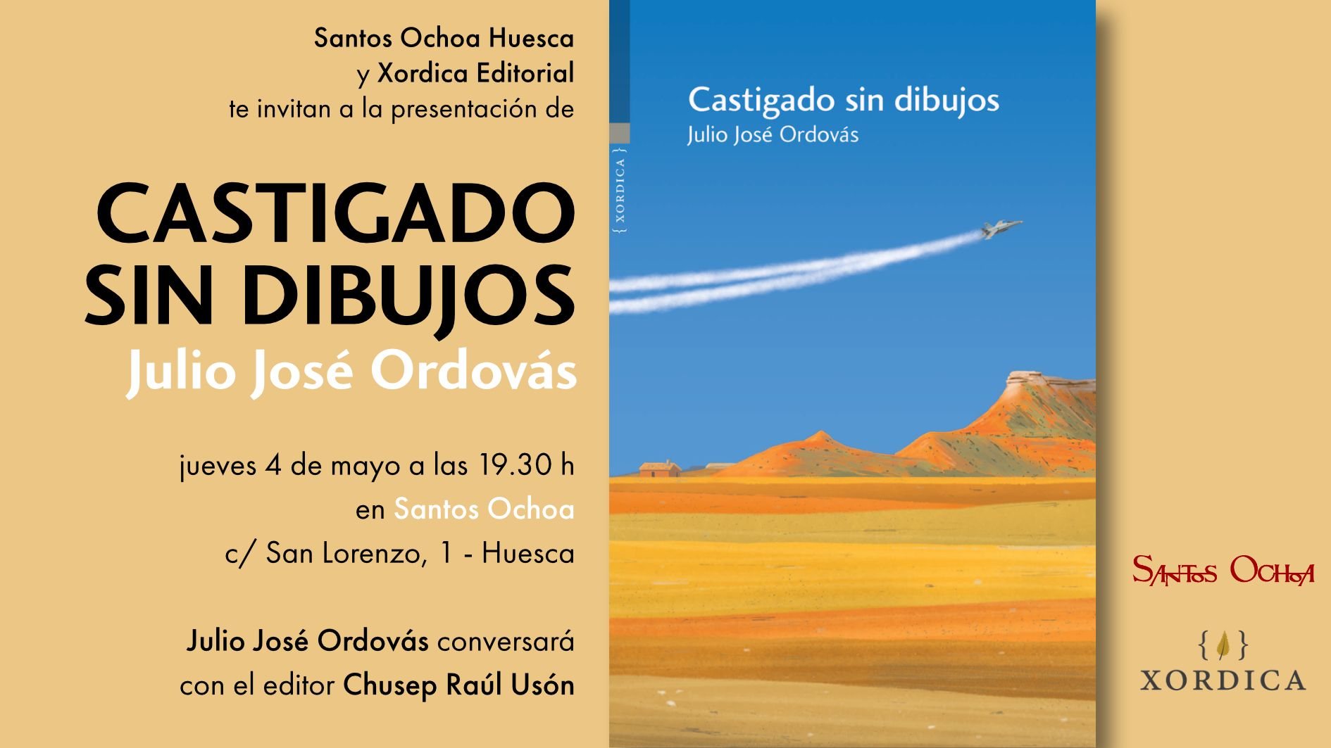 A las 19:30 horas, la librería Santos Ochoa cuenta con la presencia de autor Julio José Ordovás que presentará y firmará su libro Castigado sin dibujos en el escenario habilitado de la librería en la calle San Lorenzo 1 de Huesca.