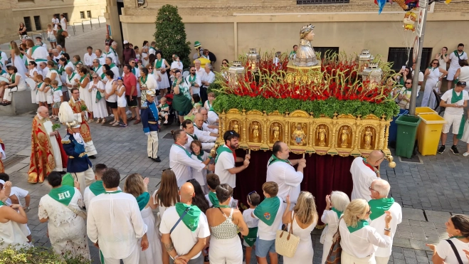 Que la Agrupación de Danzantes de Huesca sea la que que denuncia y llama la atención sobre el espectáculo, la procesión del Santo, es más que una anécdota. Cierto es que la religiosidad se ha quedado en un barniz, pero, aunque solo sea un pretexto, el desfile requiere una dignidad.
