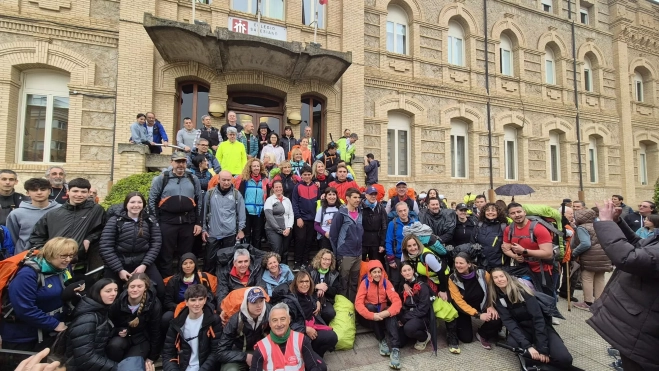 Ha aventurado José Iriarte que van a hacer "más de cien kilómetros con lluvia, barro, una carretera larga y dura, subir collados, cruzar ríos, cansancio, ampollas, en algún momento hambre, también sed, dormir en el suelo. Algunos, al veros, pensarán que estáis locos, pero locos de remate. Les contestáis con vuestra sonrisa, orgullosos de pasarlo mal para demostraos a vosotros mismos y las personas que os quieren que vale la pena de llegar hasta Javier andando. Porque ha valido la pensa salir de la comodidad del sofá para ser capaces de estar en forma y poder hacer esta peregrinación que hoy comenzáis". Ha incidido el sacerdote que "habéis experimentado y vivido unos valores que vale la pena luchar. Por ejemplo, convivir. Los jóvenes dicen que están cada día más encerrados en sí mismos, los viejos también".