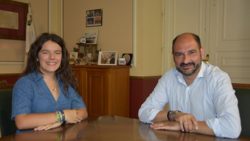 El alcalde de Barbastro, Fernando Torres, ha recibido este jueves a la barbastrense Vera Cubero Lardiés, una de las ganadoras de la XVIII edición del programa ‘Becas Europa’ que impulsa la Universidad Francisco de Vitoria y que selecciona a los 50 mejores alumnos preuniversitarios de España para reconocer y estimular su talento. La joven estudiante, que ha finalizado sus estudios de Bachillerato en el IES Martínez Vargas, ha compartido con Torres la experiencia vivida durante las últimas tres semanas.