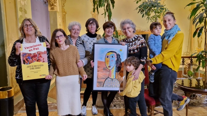 Además de informar sobre el programa Vacaciones en paz 2024, Alouda ha hecho entrega del premio que, como todos los años, sortea en combinación con la lotería de Navidad. La afortunada, que en esta ocasión ha sido Carmen Aznar, ha recibido un collage del artista Jesús Sanz Caballero.